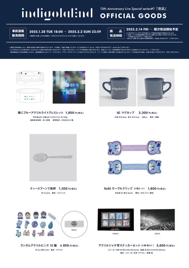indigo la End 15th Anniversary Live 「夜凪」 新グッズ公開!数量限定・事前通販決定!